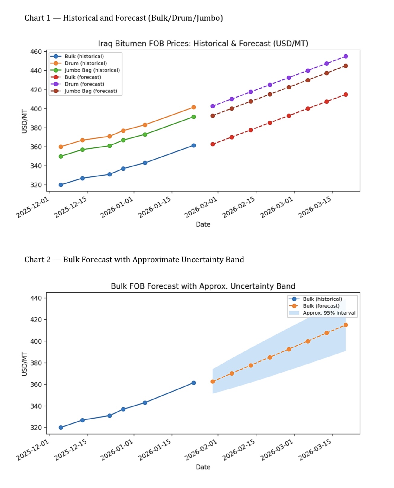 Overall, the Iraqi bitumen market has entered a stronger pricing environment where upward drift remains the dominant bias. Buyers face increasing cost exposure if procurement is delayed, while sellers are positioned to defend higher offer levels as long as supply discipline and export demand remain supportive. The key conclusion is that Iraq FOB bitumen pricing has structurally shifted upward, and the near-term outlook remains firm with continued bullish momentum.